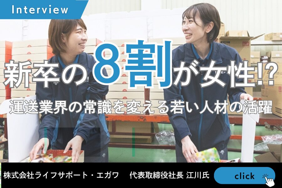 運送業界と聞くと、多くの人が男性中心の職場をイメージするのではないでしょうか。しかし、株式会社ライフサポート・エガワでは、そんな業界の常識を覆す光景が広がっています。若い女性スタッフが生き生きと働き、デジタル技術を駆使して業務を効率化する姿は、ライフサポート・エガワを訪れる人を驚かせています。後編となる今回は、同社の若い人材活用戦略と、業界変革への想いについて江川代表取締役社長に伺いました。