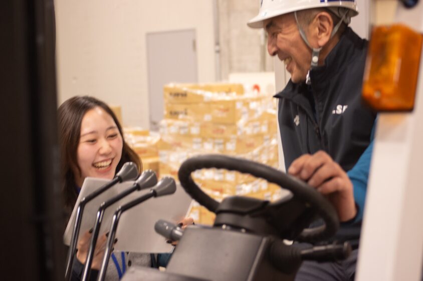 2014年頃から新卒採用を本格化し、現在では毎年20名前後の採用を行っていますが、その中で女性の占める割合が非常に高いのが特徴です。2025年の新卒採用では、22名中18名が女性です。彼女たちは単に事務作業を希望しているだけではなく、フォークリフトを扱っての商品管理など、様々な分野で中心的な役割を担っています。また、ユニフォームもスポーツアパレルブランドを使用するなど、従来の運送業界のイメージを変える取り組みを続けています。