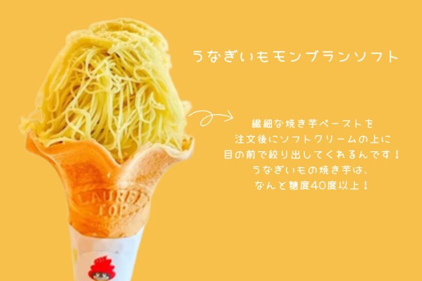 浜名湖SA内で人気を集めているのが「うなぎいもモンブランソフト」です。