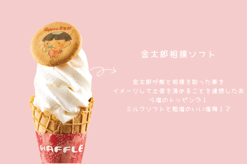 足柄山で金太郎が相撲をとったという伝説がモチーフ。ミルクソフトにあら塩をかけ、金太郎のクッキーがトッピングされている可愛らしい一品。