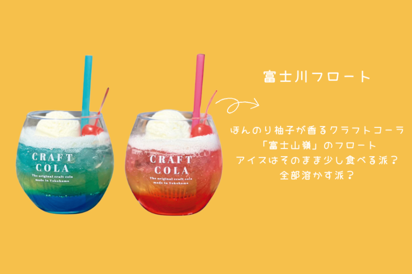 「横浜クラフトコーラ」が手がける、ほんのり柚子が香るクラフトコーラ「富士山嶺」のフロート。涼しげで、見た目も可愛いスイーツドリンクです。